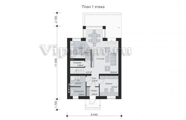 | Размеры дома: | 11.64м×8.64м |